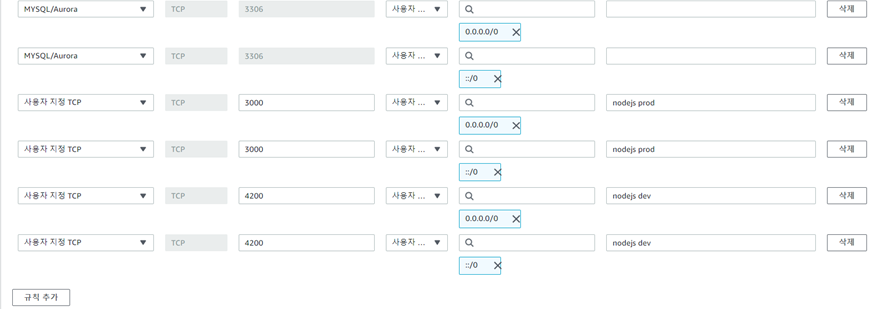 기존 보안그룹은 제거! 그리고 [저장]하면 보안그룹 설정 끝!!