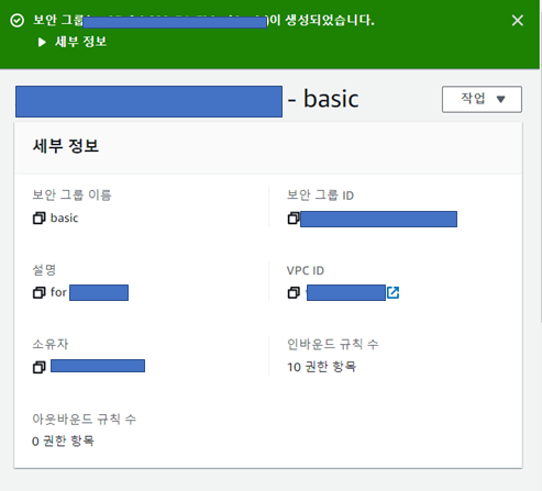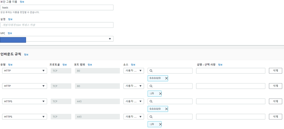 하지만 전 basic이라는 이름의 보안그룹을 새로 만들려고 해요