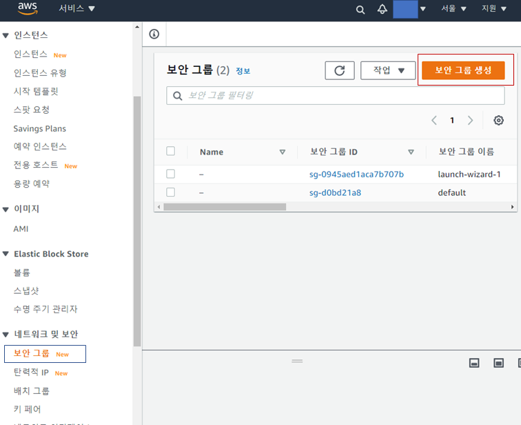지난 포스팅에서 인스턴스를 생성했으니 이제 보안그룹을 설정하러 갑니다 ㅎㅎ