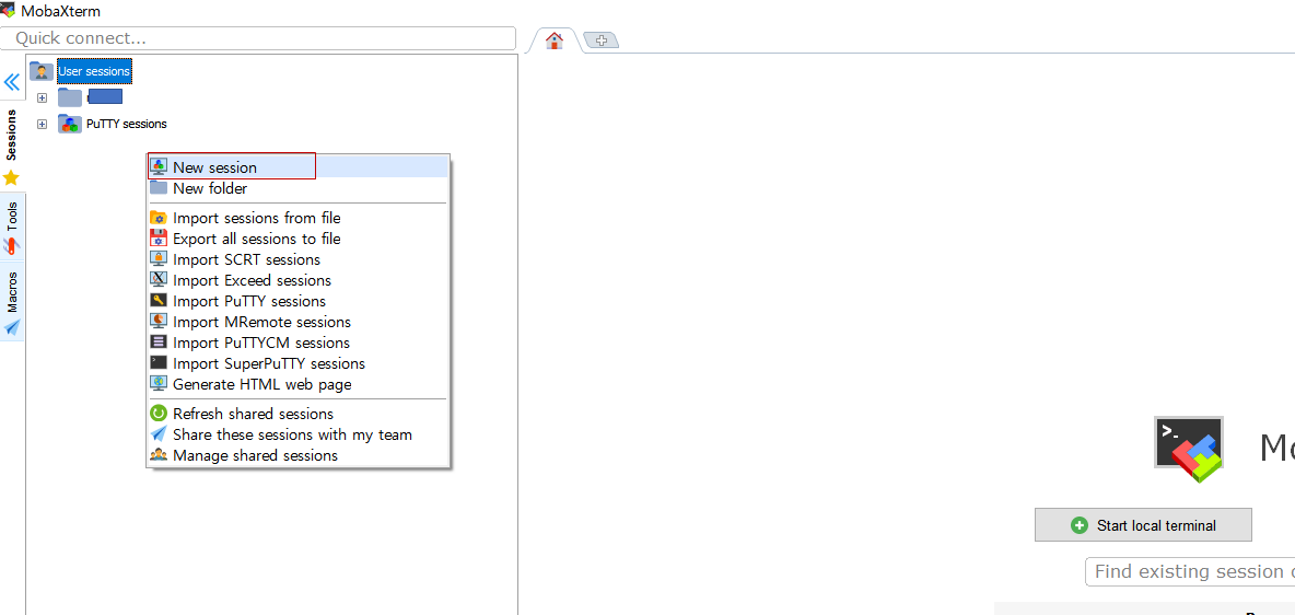 자 그럼! MobaXterm이 설치된 상태라 치고 실행합니다