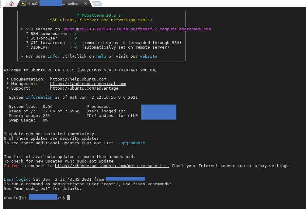 | [ES2] 인스턴스 생성 및 초기설정(프리티어)2_보안그룹 / Elastic IP (0) | 2021.01.03 |