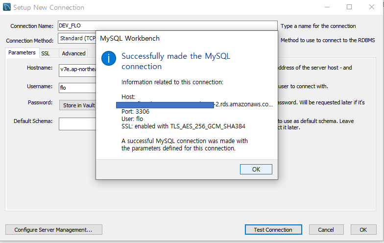 이번엔 방금 생성한 유저정보로 연결 성공!!