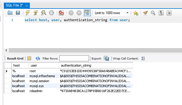 원래 암호를 저장하는 컬럼명은 password 였는데, 최신버전부터 authentication_string으로 변경되었답니다!