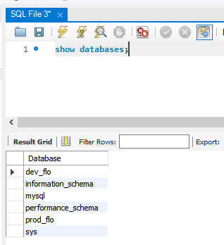 dev_flo는 내가 삭제하고자 하는 DB명!
