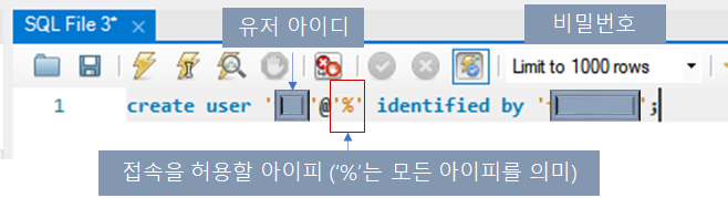 그러면 방금 생성한 유저에게 제가 해당 아이디로 접근할 데이터베이스에 대한 접근권한을 주어야 하는데요!