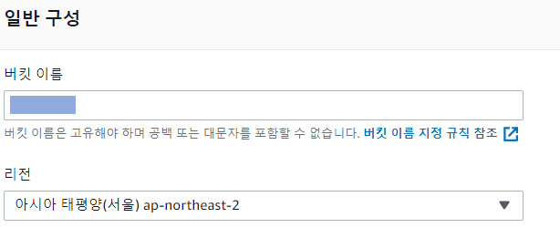 버킷이름은 나의 AWS 계정 내에서 고유해야합니다! 어떤 서비스를 위한 S3서버인지 기억하기 좋게 지정해줍니다 ㅎㅎ