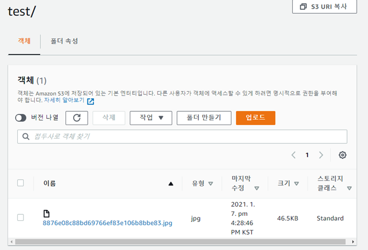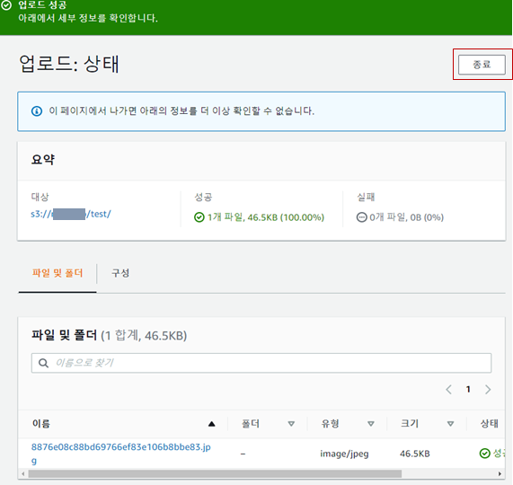 대상 경로를 보면 버킷 내 생성한 폴더로 지정된 것이 보이시죠?ㅎㅎ