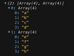 arr의 출력 결과는 배열 abcd와 배열 efgh를 원소로 갖는 2차원 배열이다.
