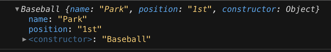 name: Park, position: 1st 를 갖는 Baseball 객체가 player라는 이름으로 생성된다.