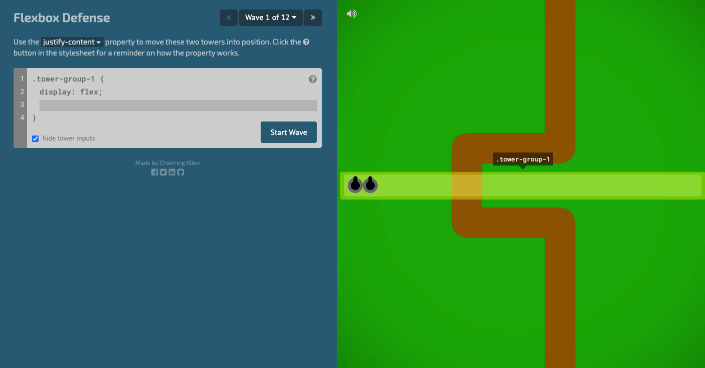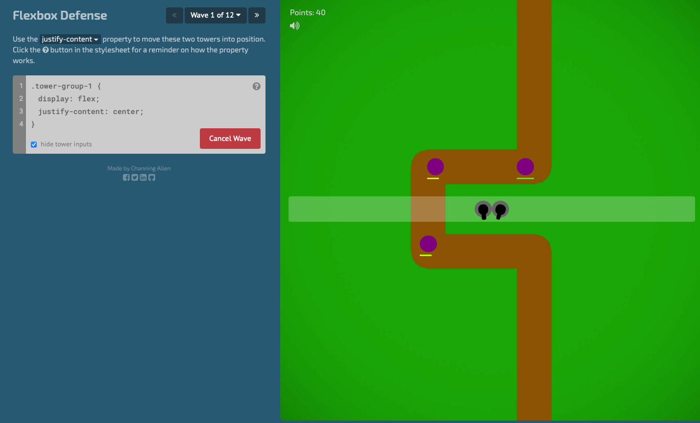 Your job is to stop the incoming enemies from getting past your defenses. Unlike other tower defense games, you must position your towers using CSS!